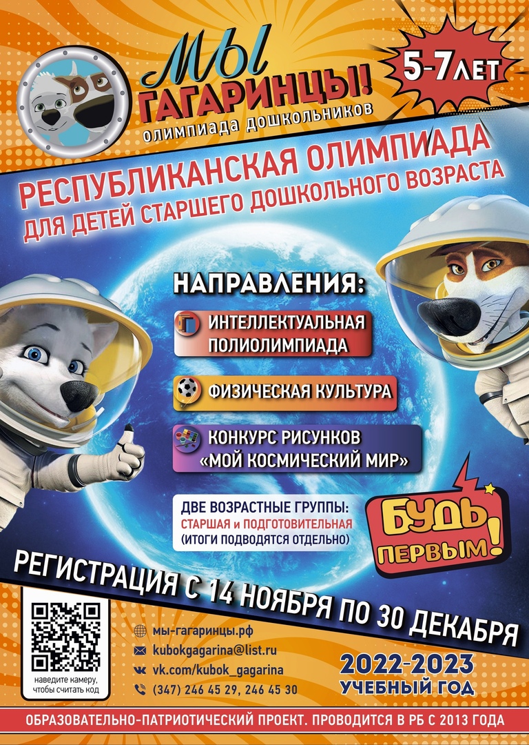 14 ноября начинается регистрация ДОУ и участников Республиканской олимпиады для детей старшего дошкольного возраста «Мы гагаринцы!».