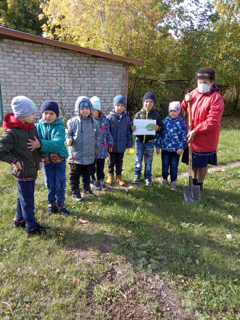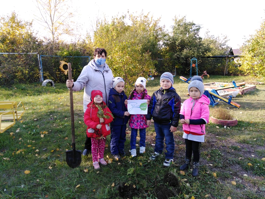 В целях формирования активной положительной позиции по отношению к природе, воспитания у детей экологической культуры детский сад принял участие в республиканской экологической акции "Лес Победы" в рамках Всероссийской акции "Зеленая Россия" и "Сохраним лес", посвященной 75-летию Победы в Великой Отечественной войне 1941-1945 годов. На территории детского сада посажены березы и рябины.